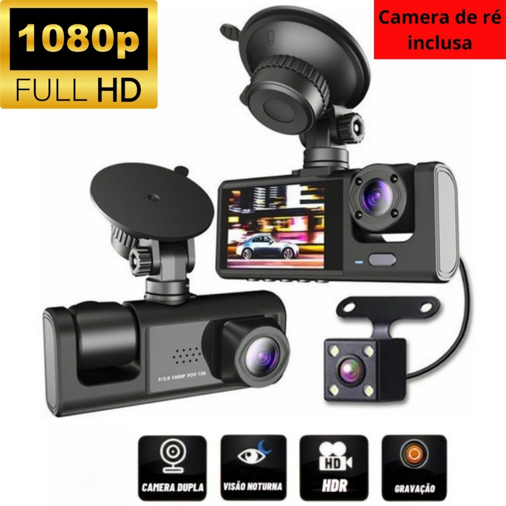 Câmera de Segurança Veicular DVR com 3 Lentes – Gravador de VĂdeo 1080P – Gravação Frontal, Interna e Traseira