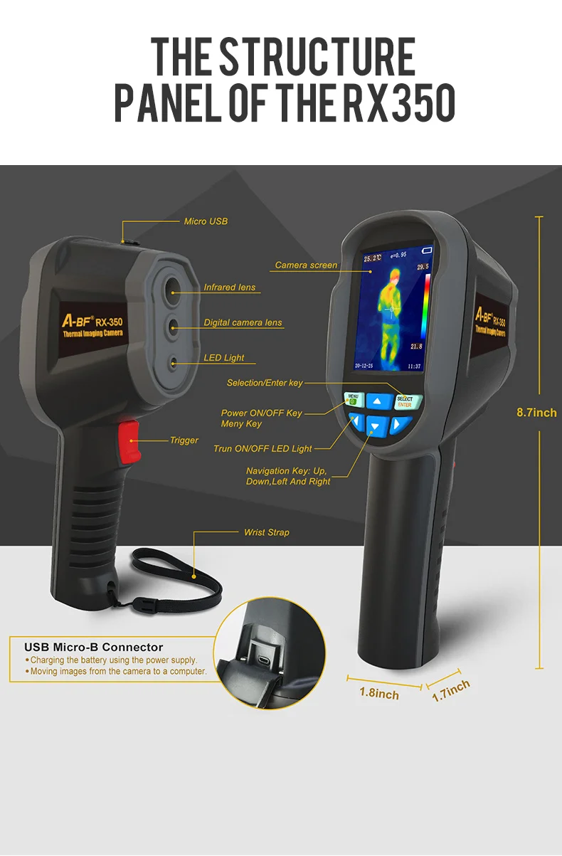 Câmera Térmica A-BF RX-350 160×120 IR Medição -20°C a 550°C com Software para PC