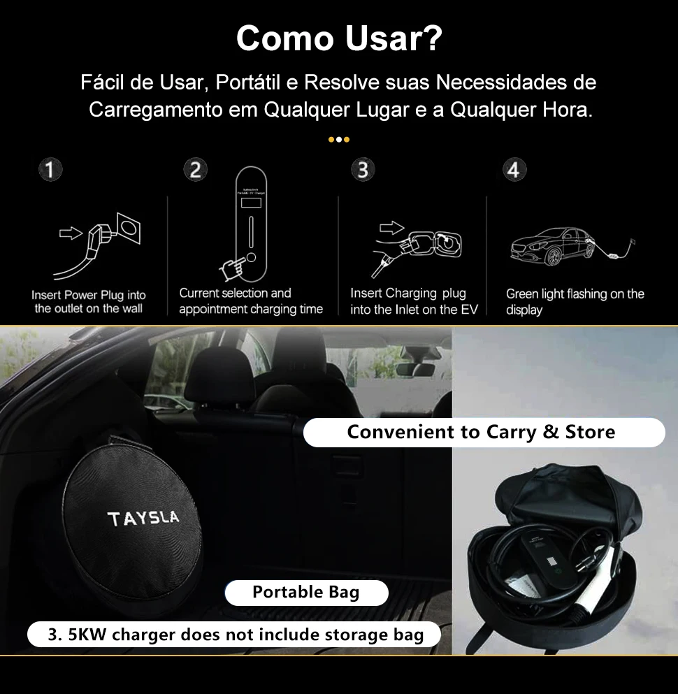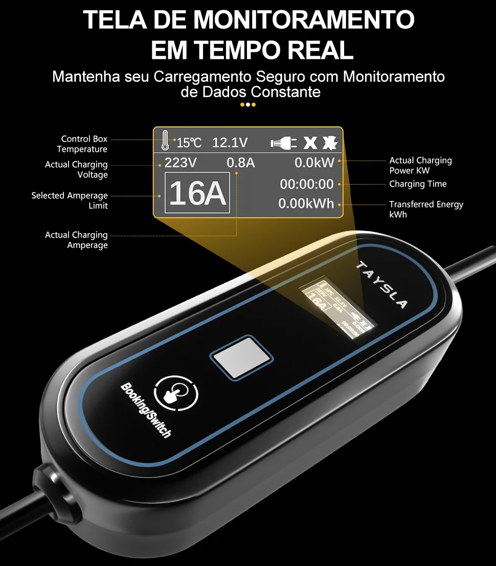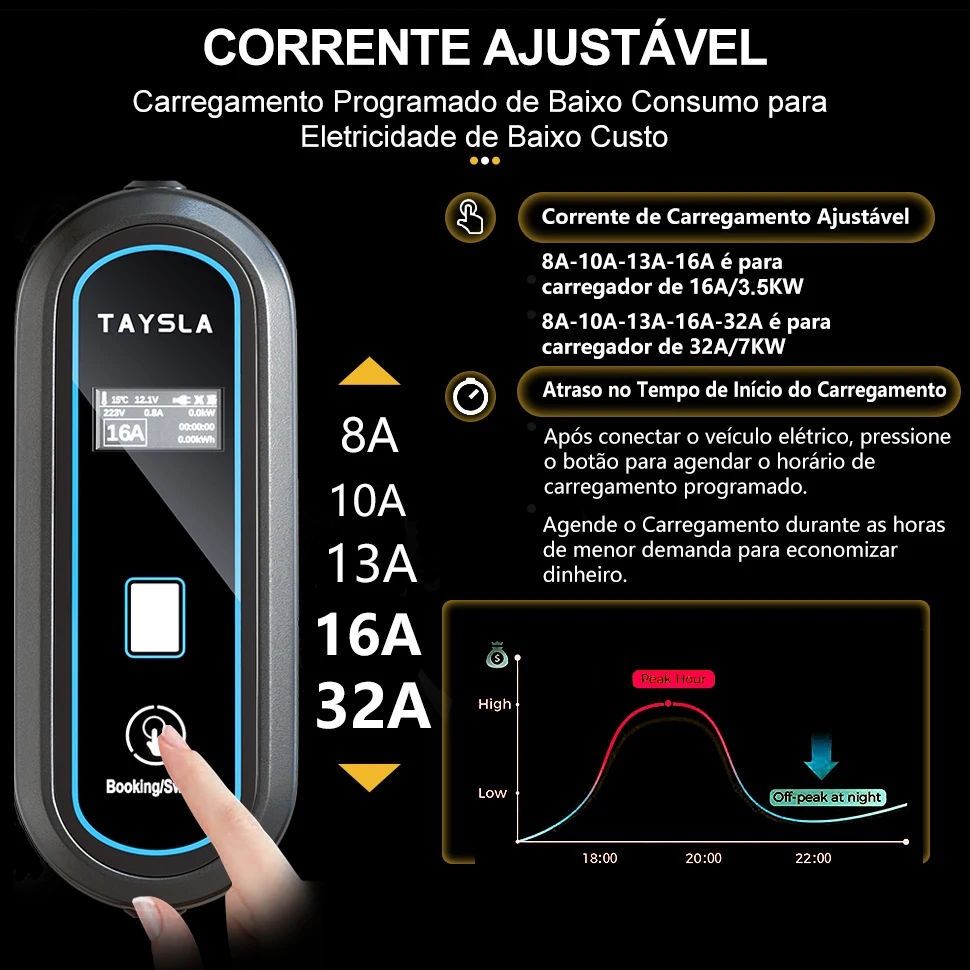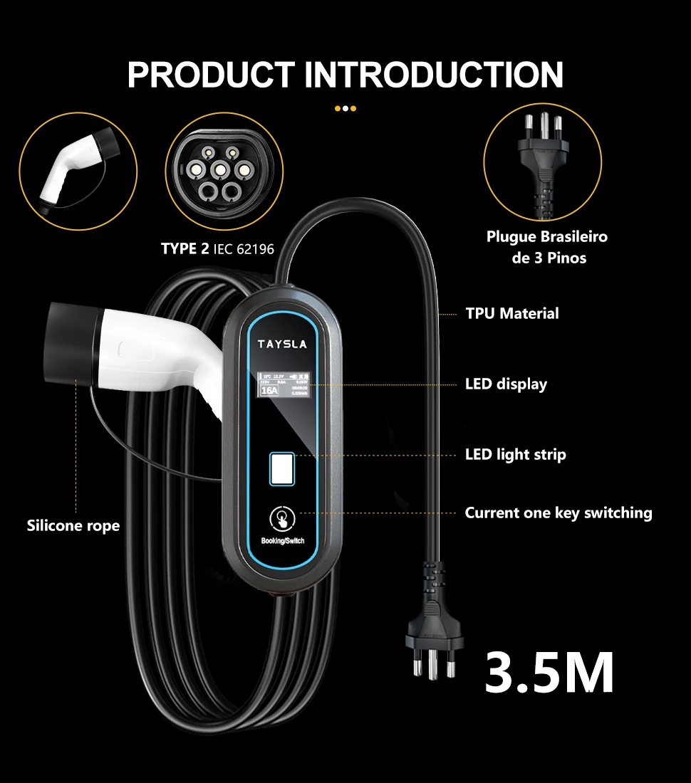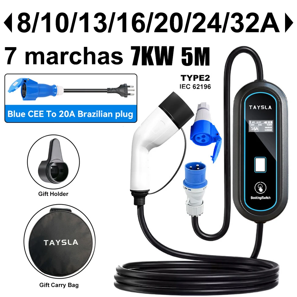 Carregador para Veículo Elétrico e Híbrido Plug-in TAYSLA Tipo 2 – 7 kW 32A Compatível com BYD, GWM e EVs