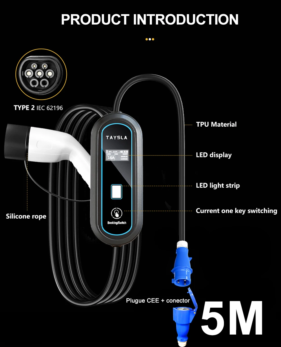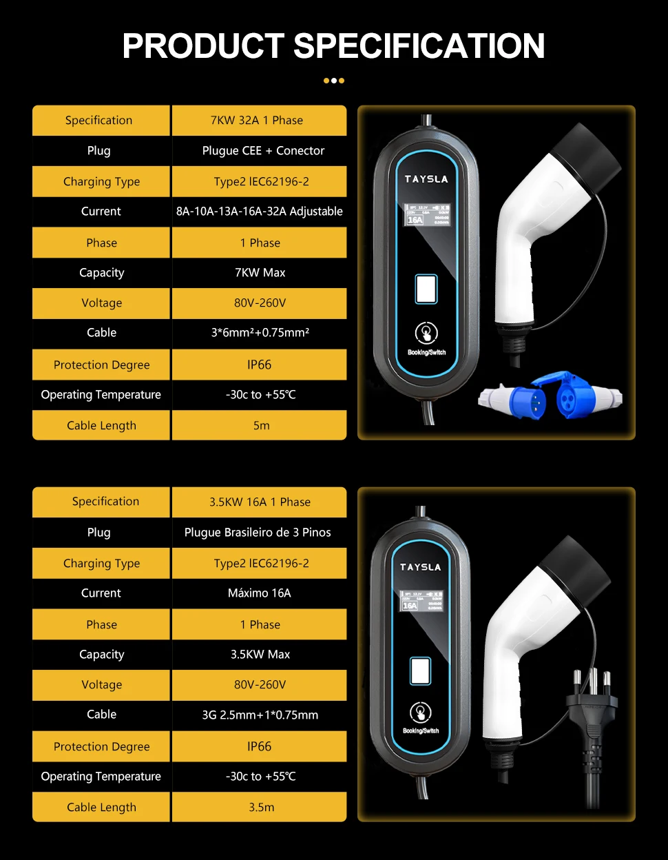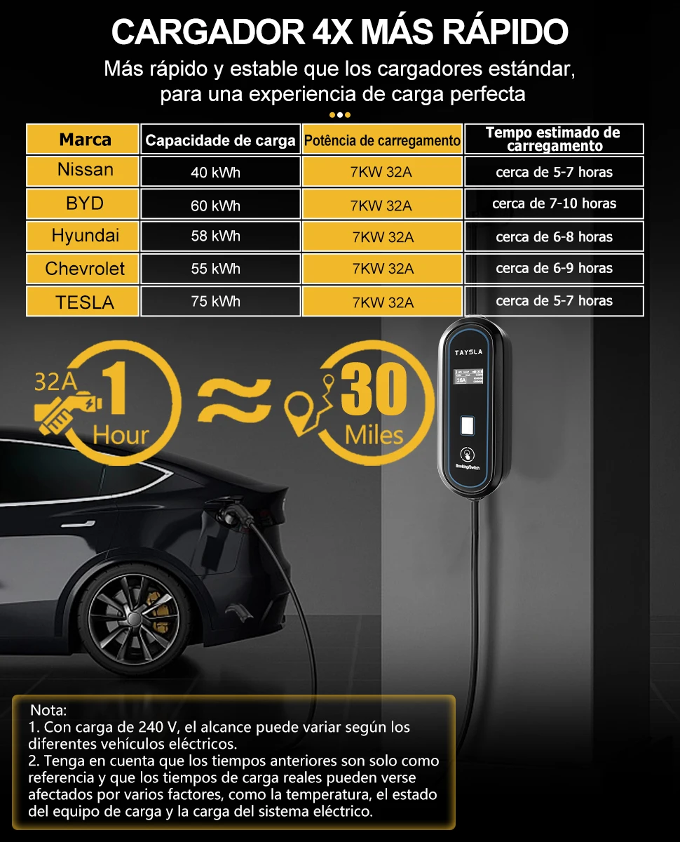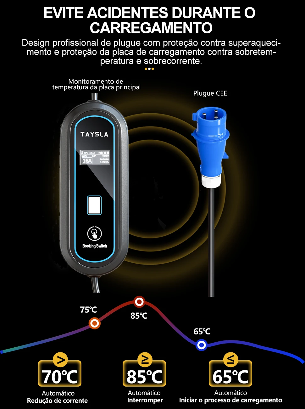 Carregador para Veículo Elétrico e Híbrido Plug-in TAYSLA Tipo 2 – 7 kW 32A Compatível com BYD, GWM e EVs