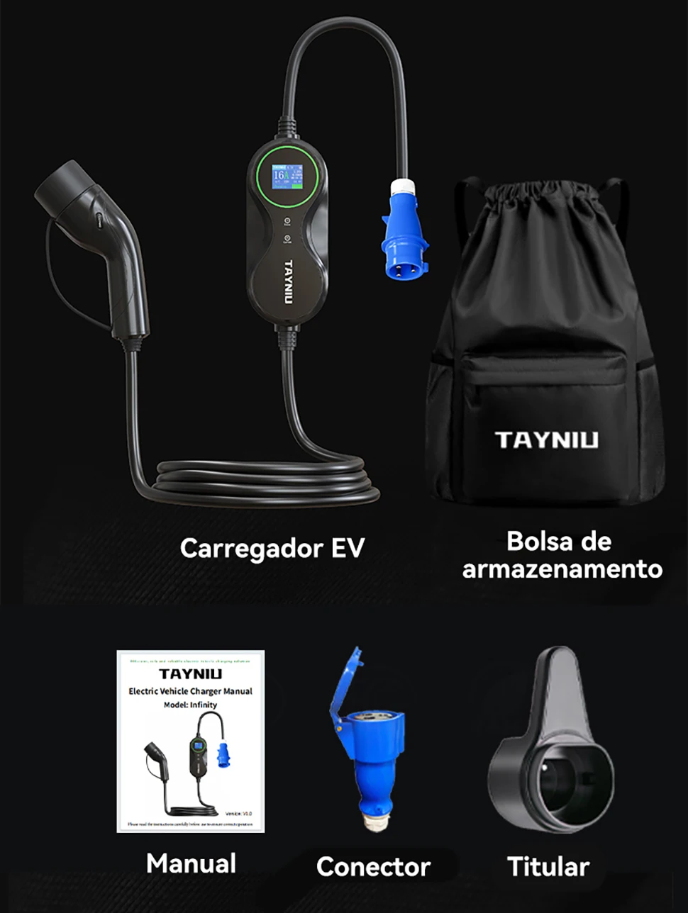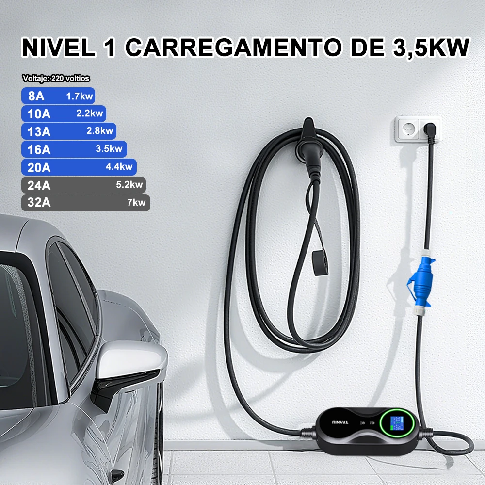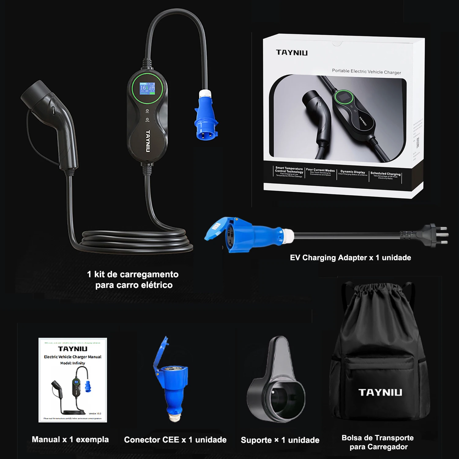 Carregador Portátil para Veículo Elétrico e Hibrido TAYNIU Tipo 2 – 3,5kW ou 7kW com APP