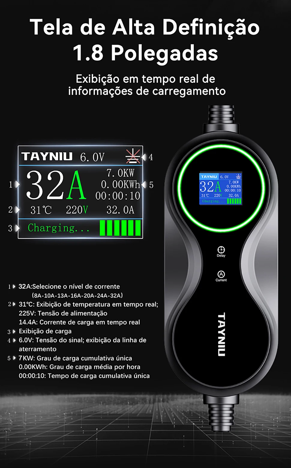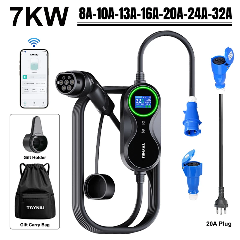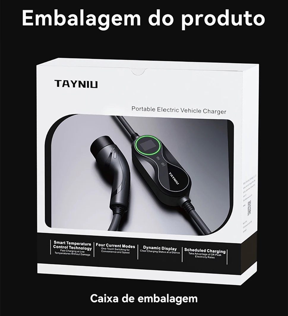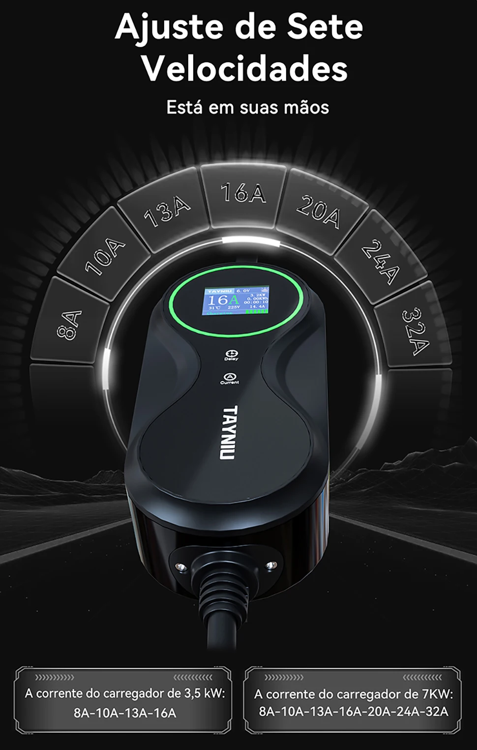 Carregador Portátil para Veículo Elétrico e Hibrido TAYNIU Tipo 2 – 3,5kW ou 7kW com APP
