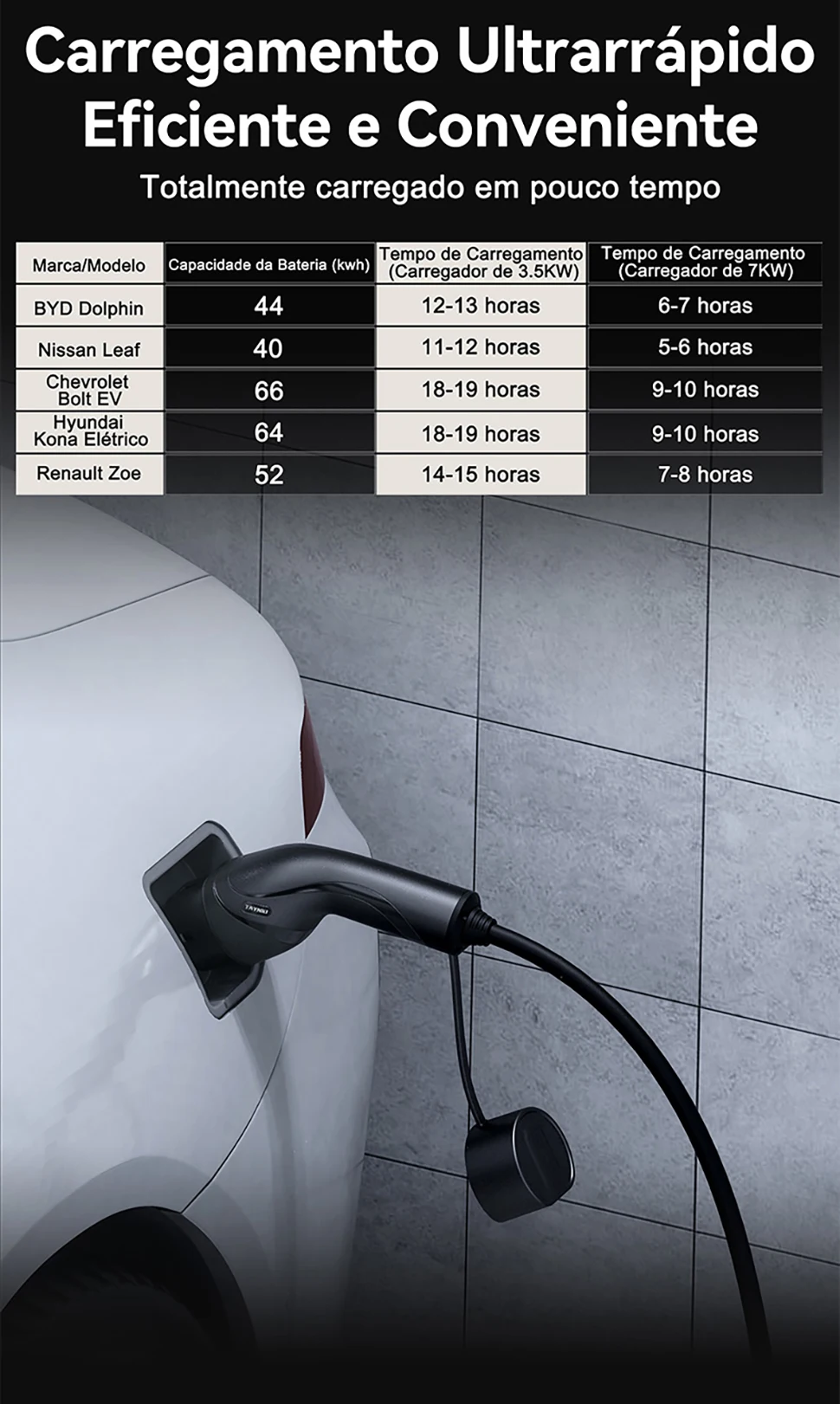 Compatível com todos os veículos elétricos vendidos no Brasil, incluindo: