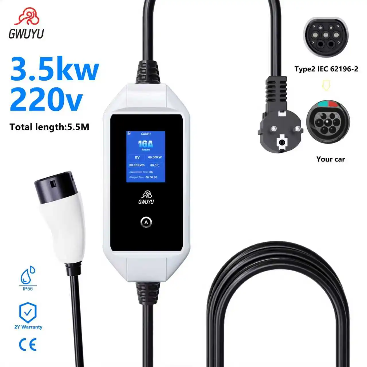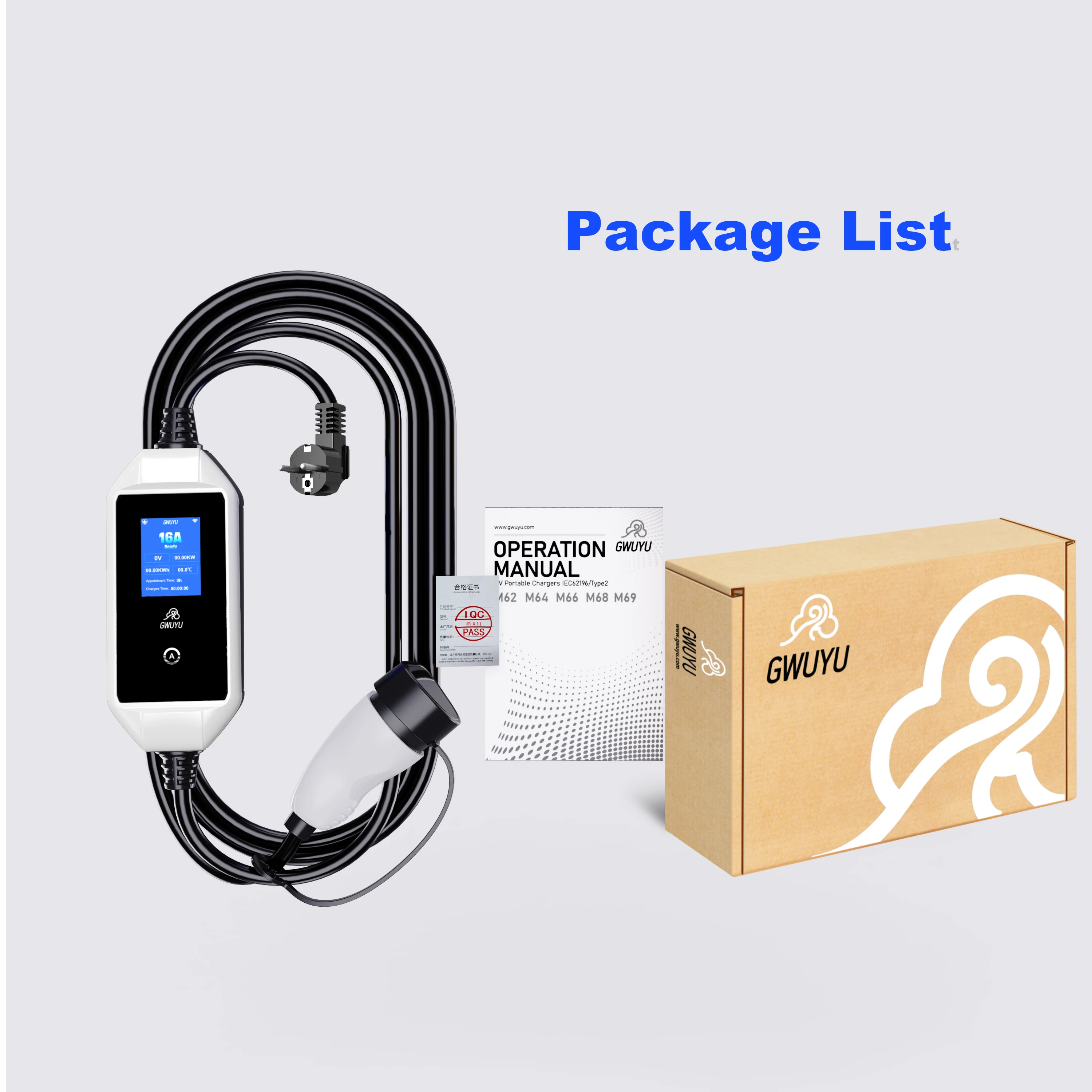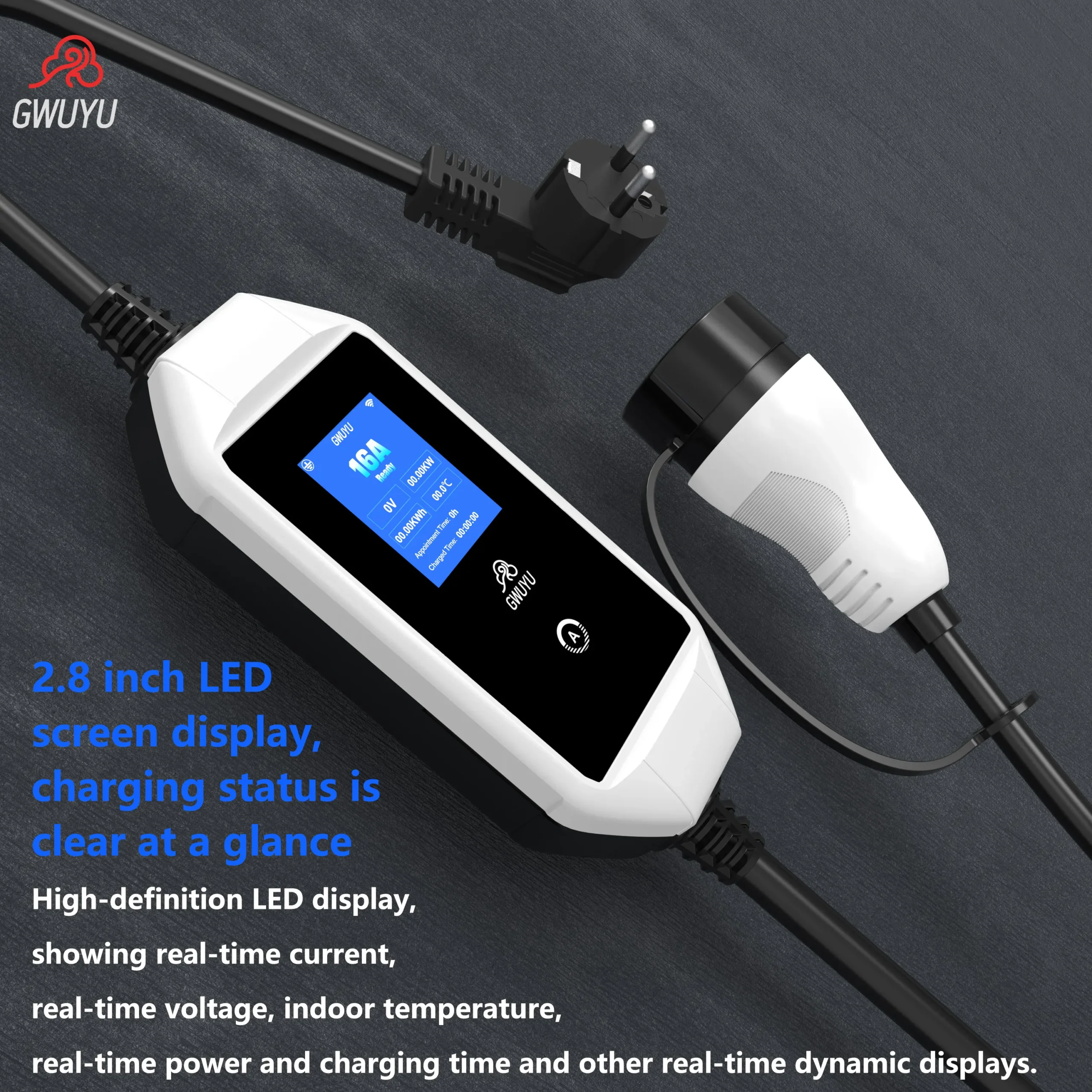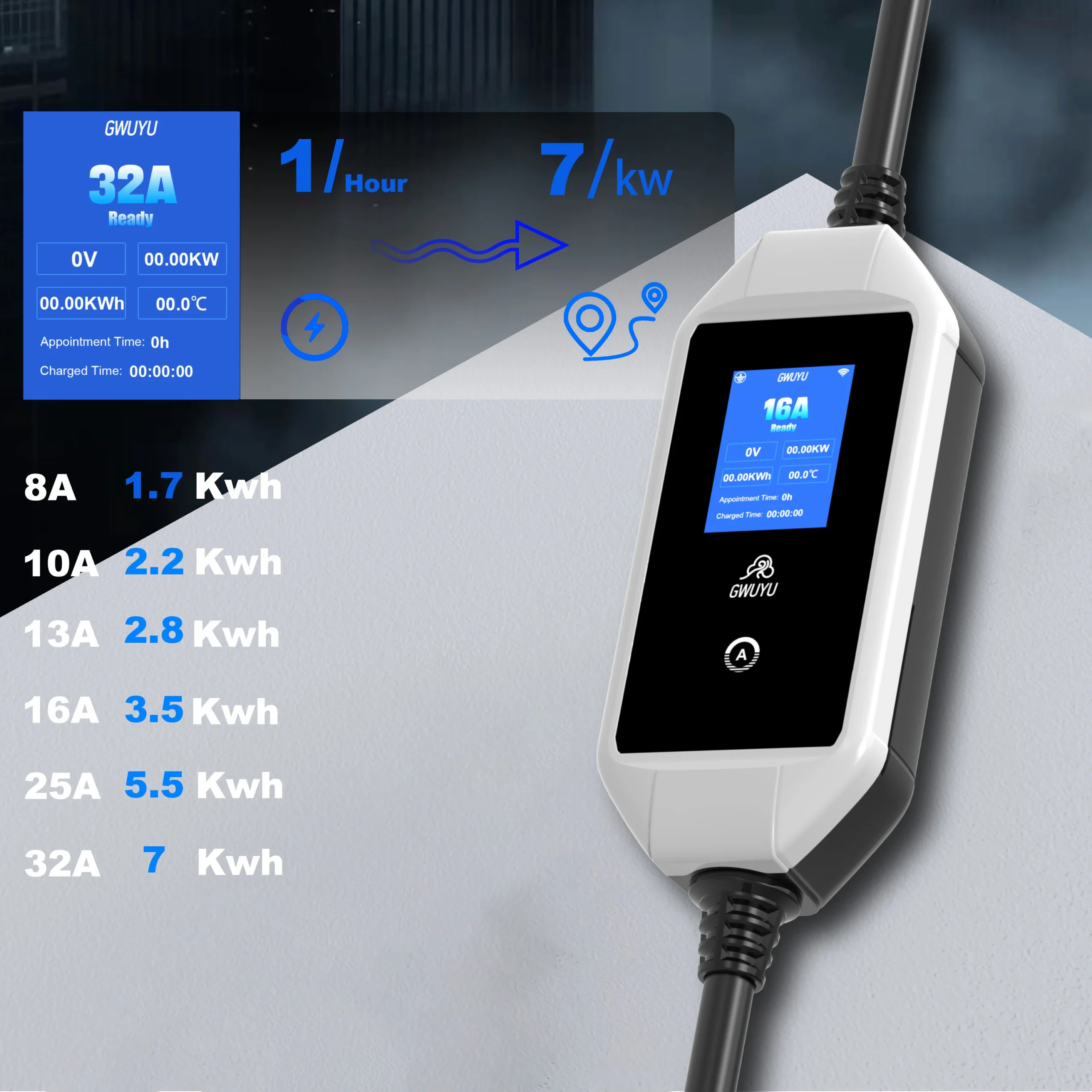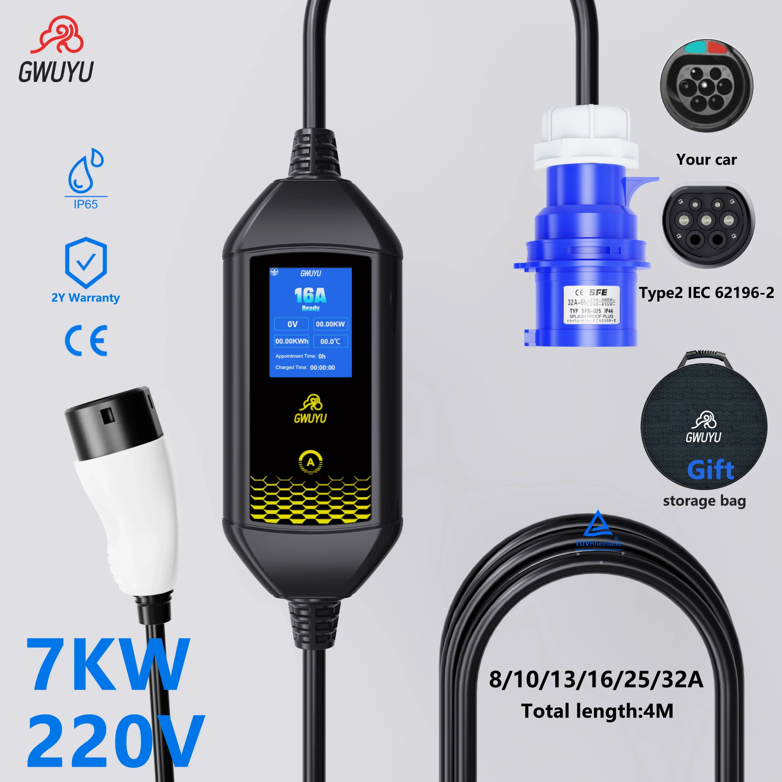 Carregador Veícular Elétrico e Hibrido GWUYU Tipo 2 7 kW 32A – Portátil