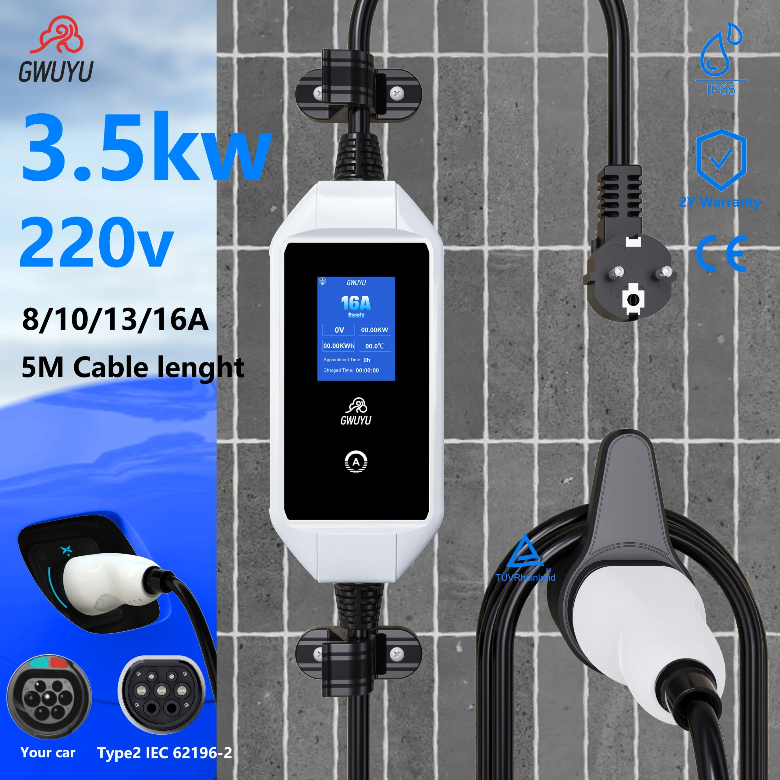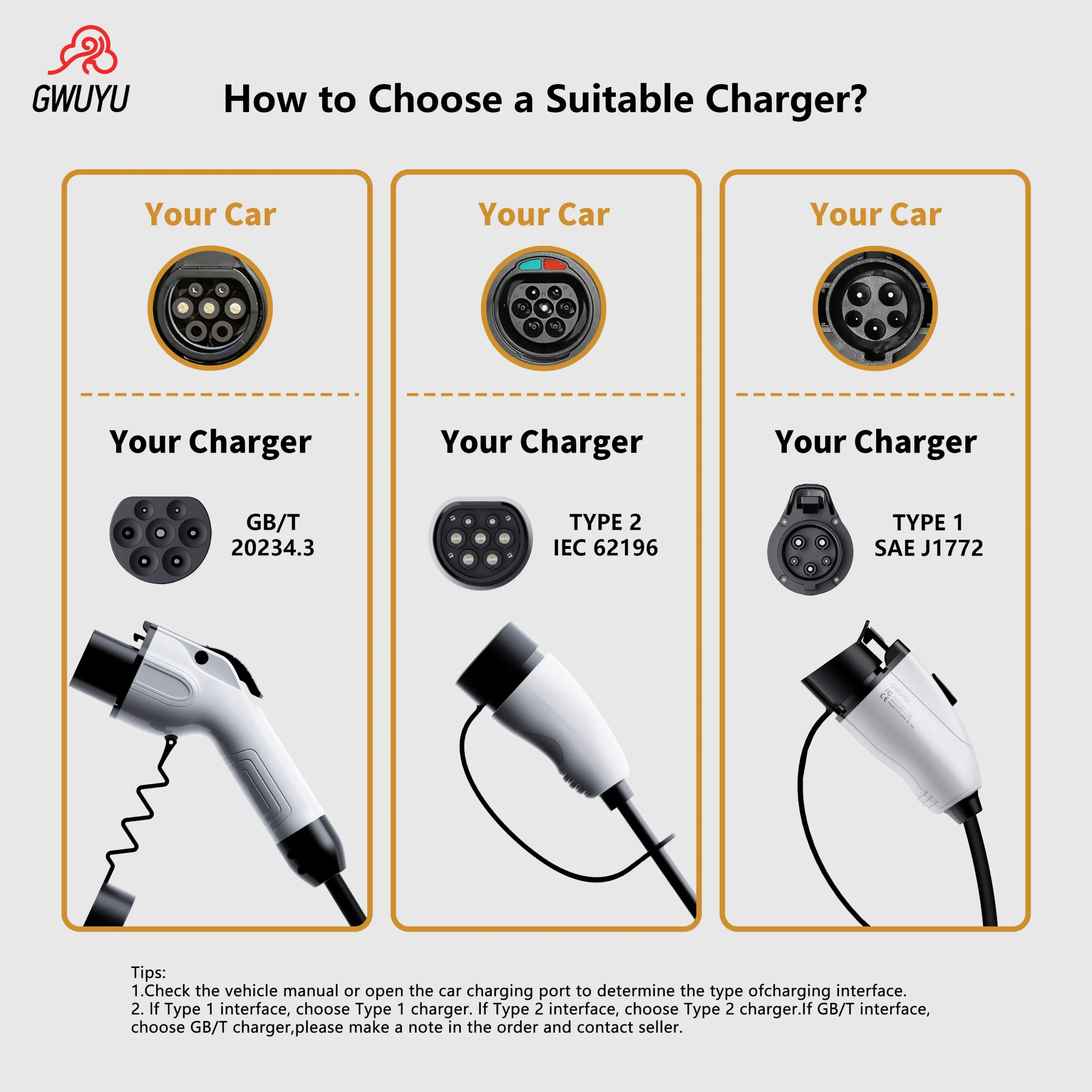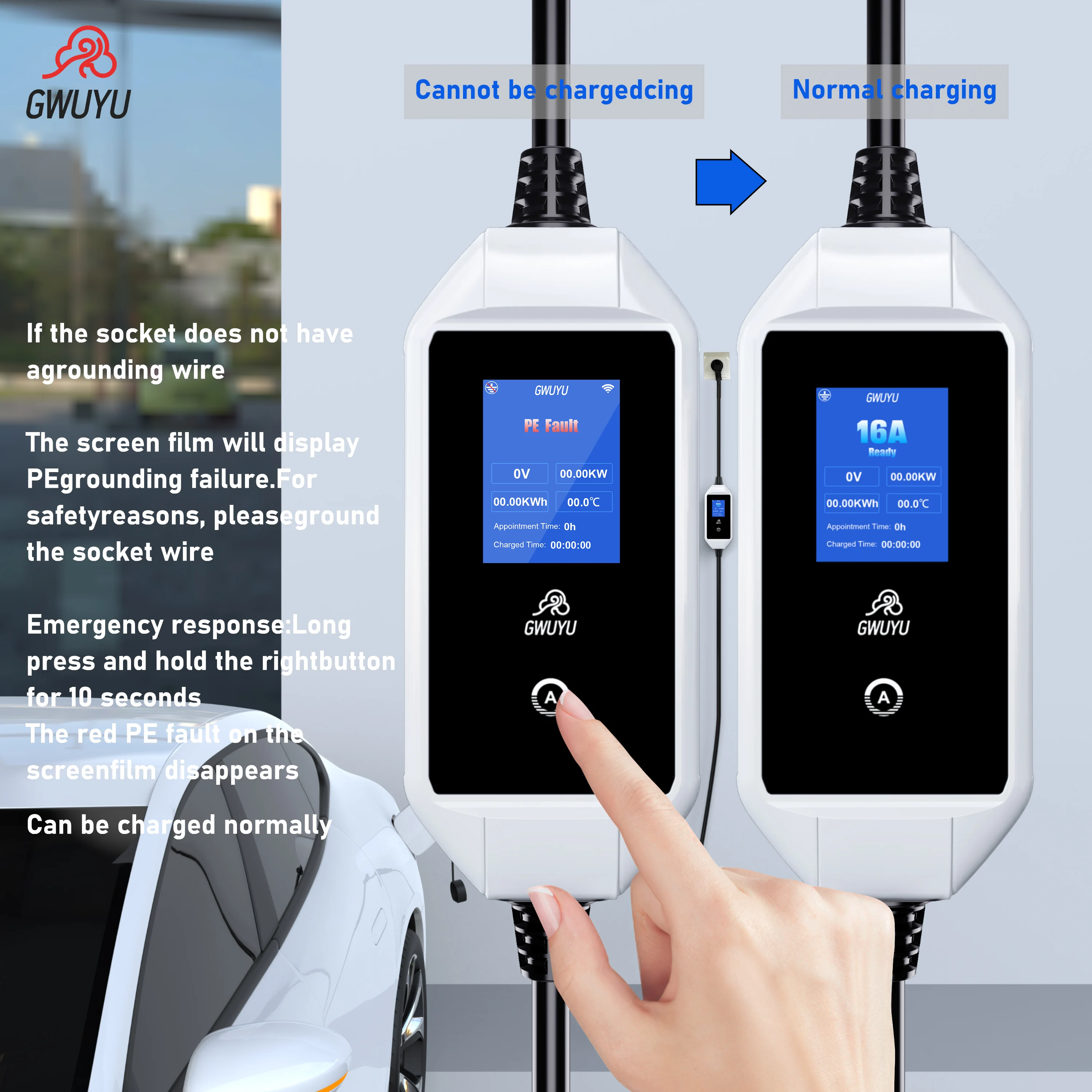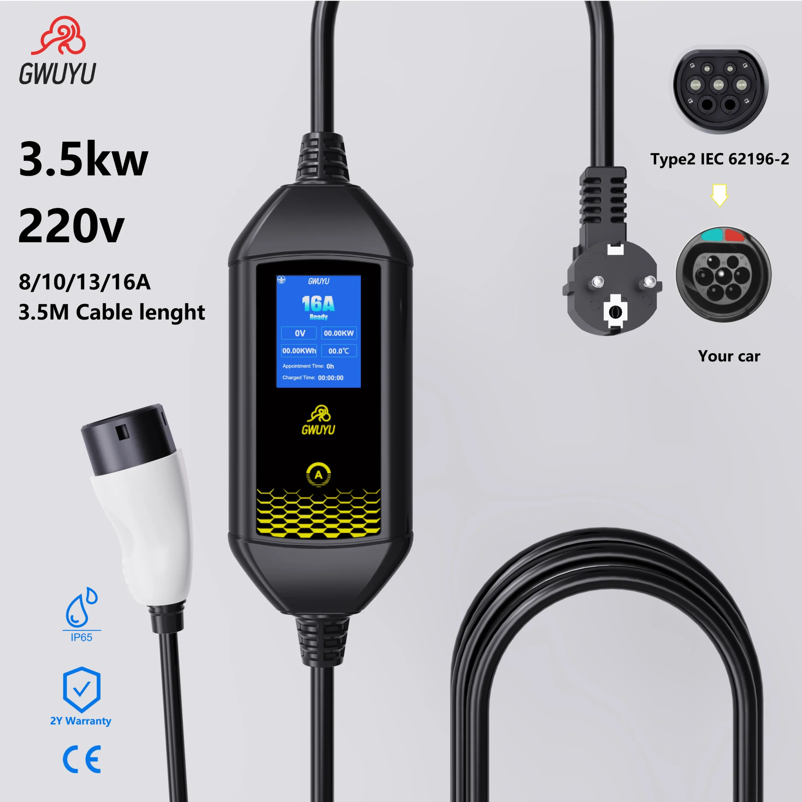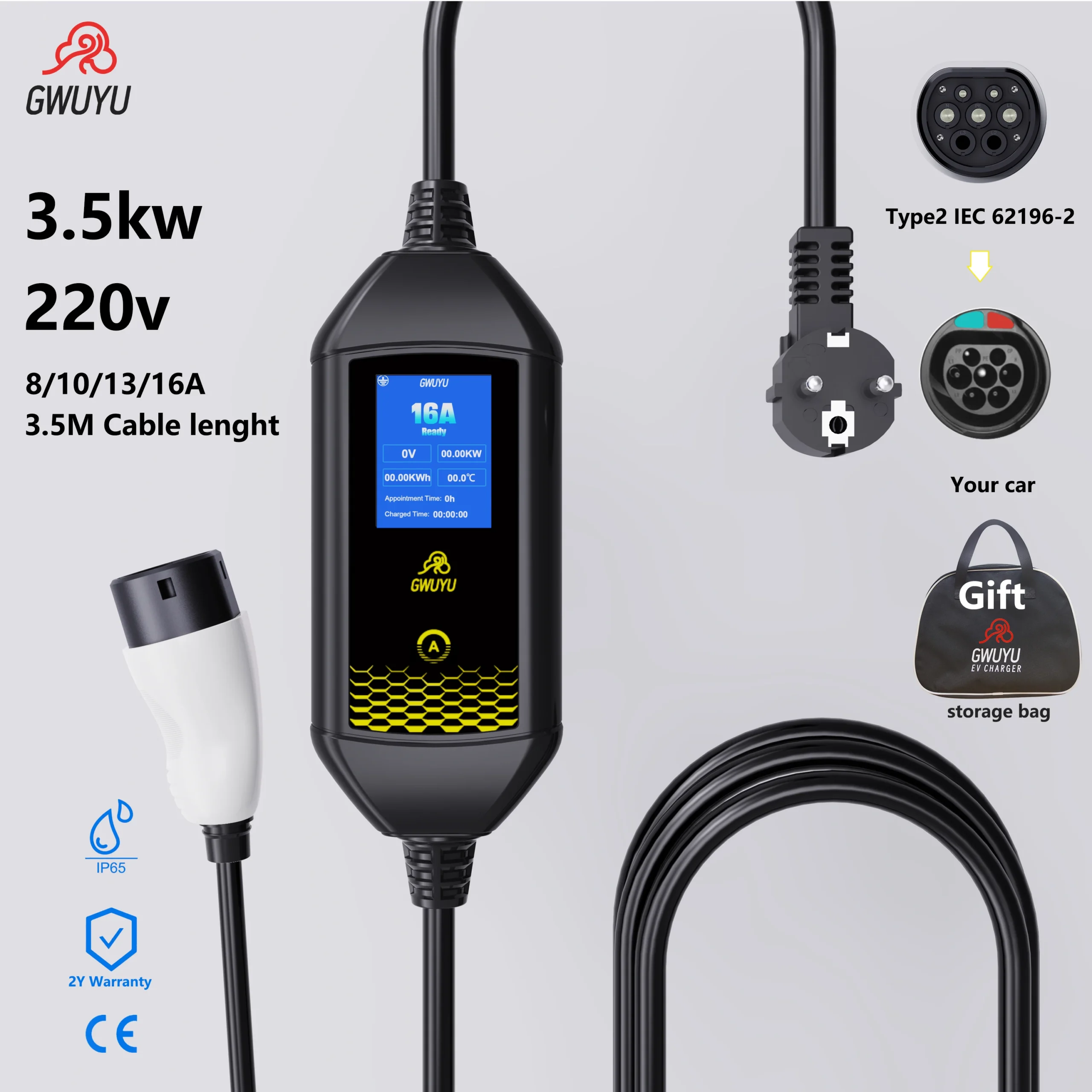 Carregador Veícular Elétrico e Hibrido GWUYU Tipo 2 7 kW 32A – Portátil