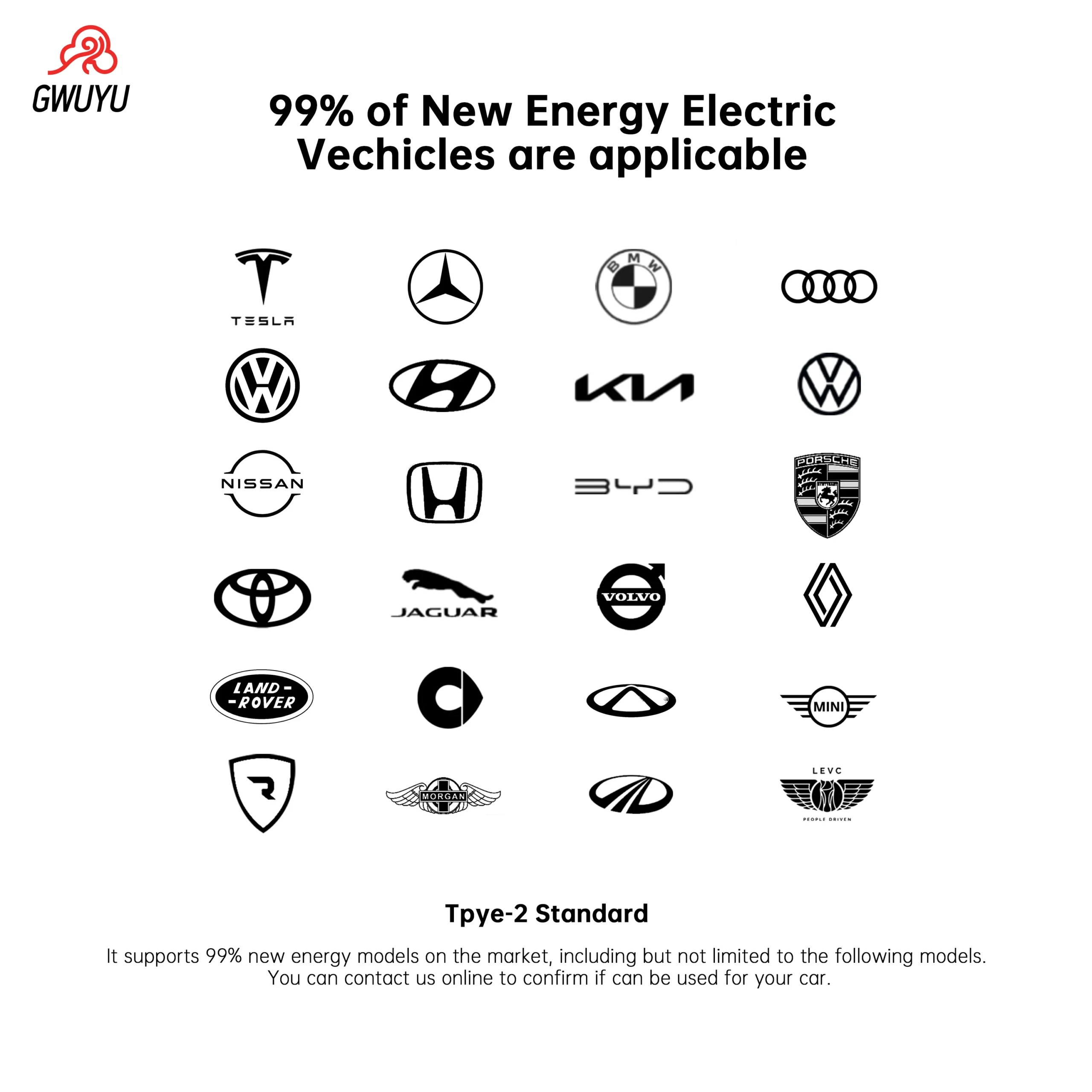 Compatível com a maioria dos veículos elétricos e híbridos plug-in, oferecendo mais flexibilidade do que carregadores convencionais.