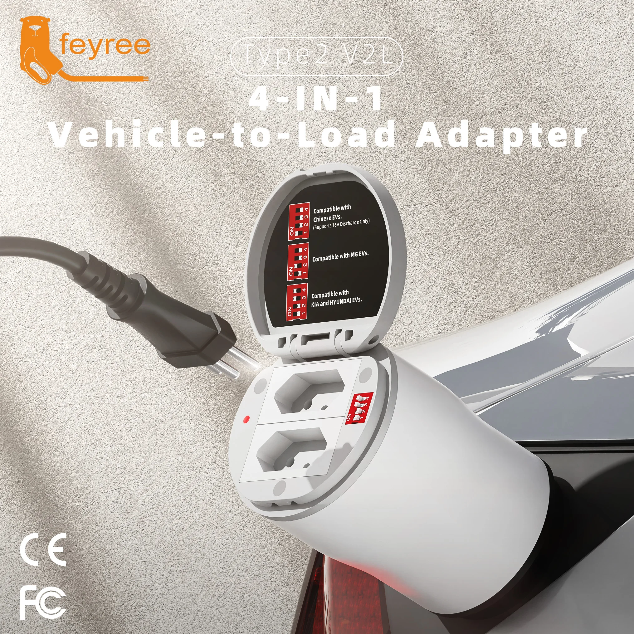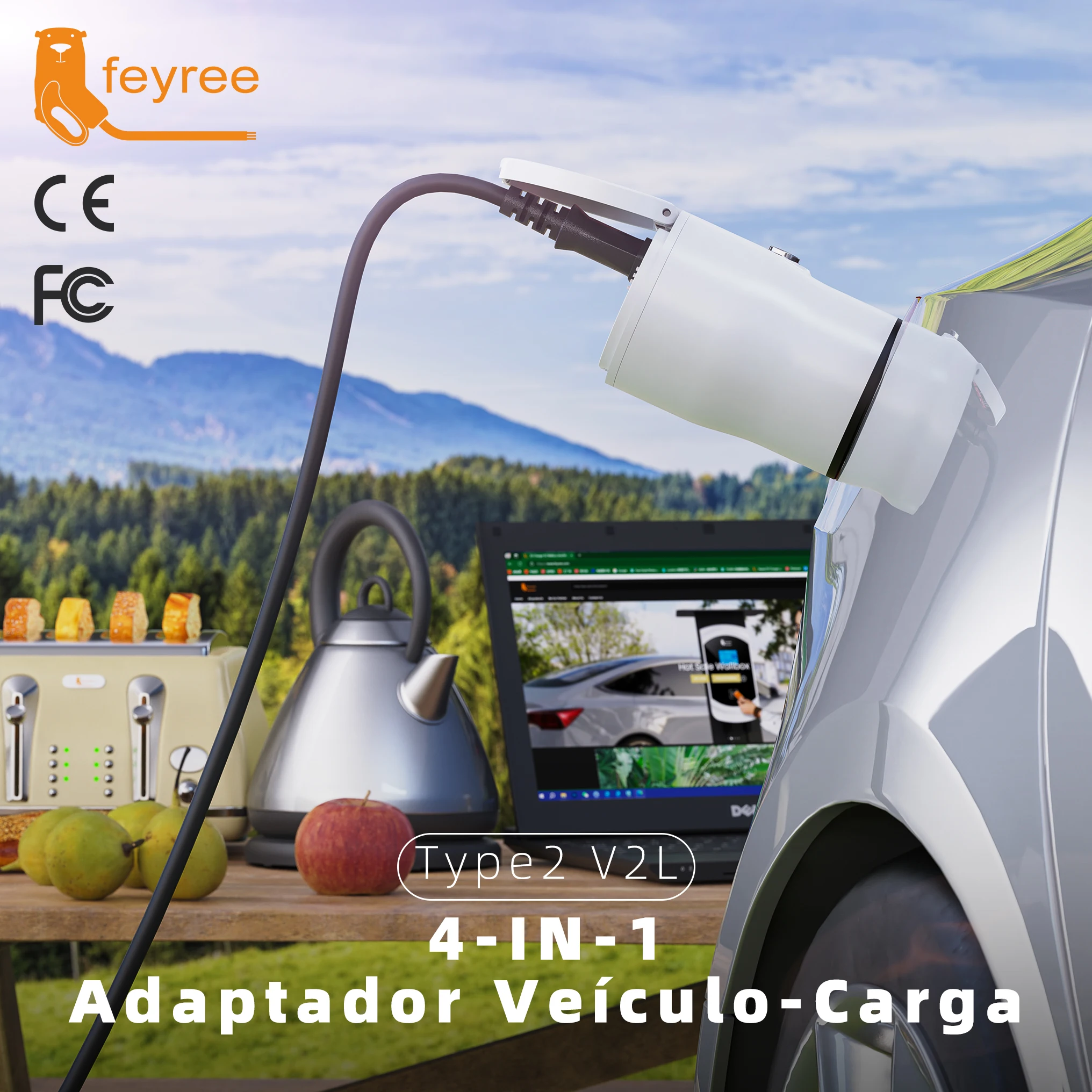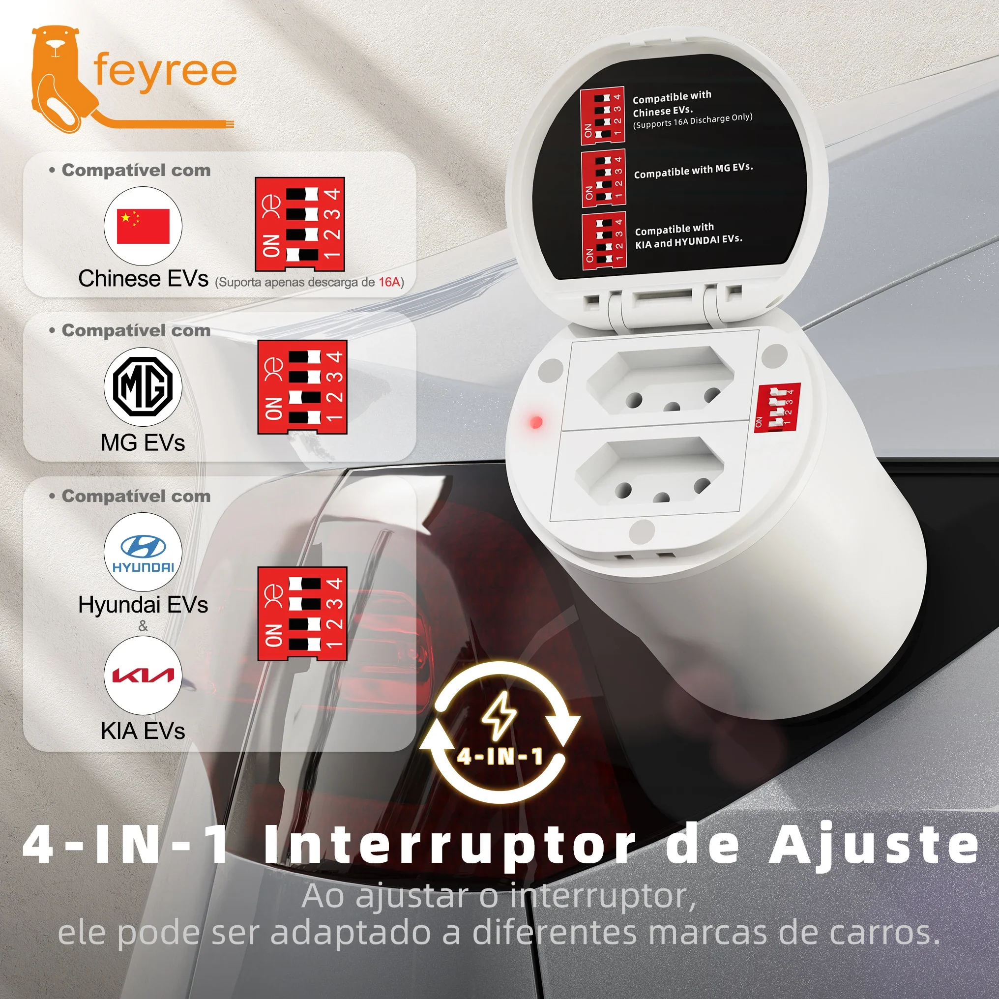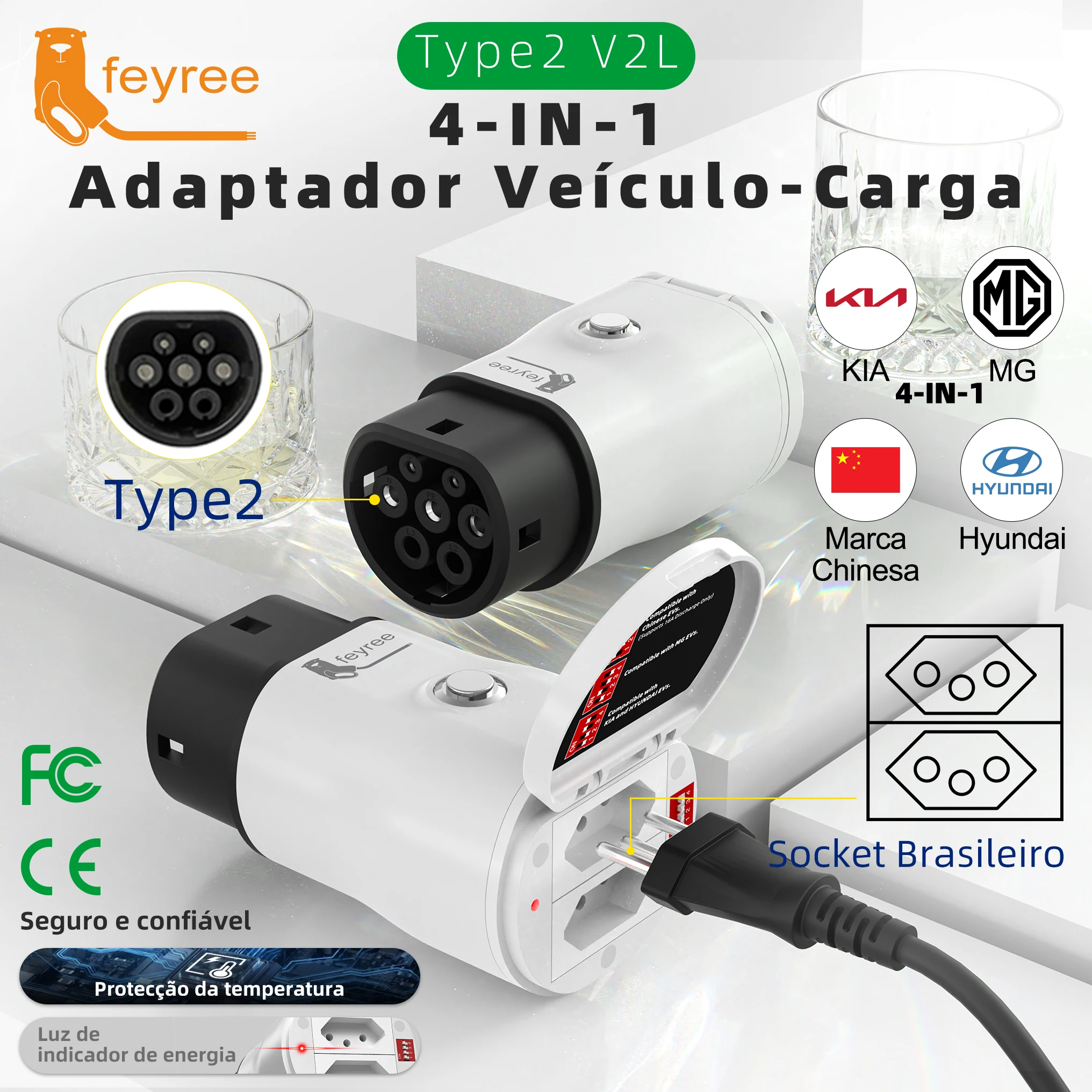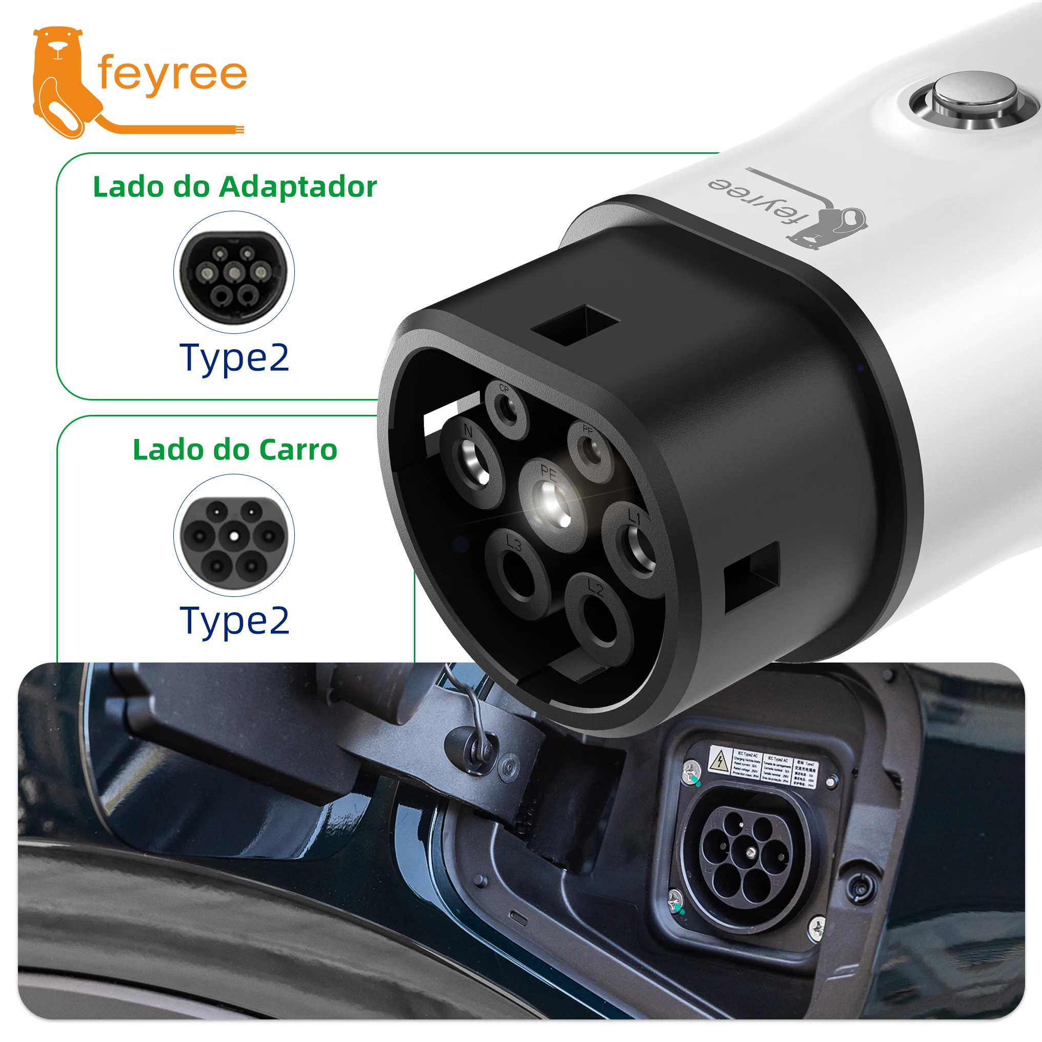 Adaptador V2L Tipo 2 Feyree com Tomada Brasileira 10A/20A para Veículos Elétricos